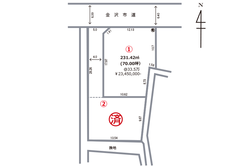 | 土地面積 | ①231.42㎡(70.00坪) | ||