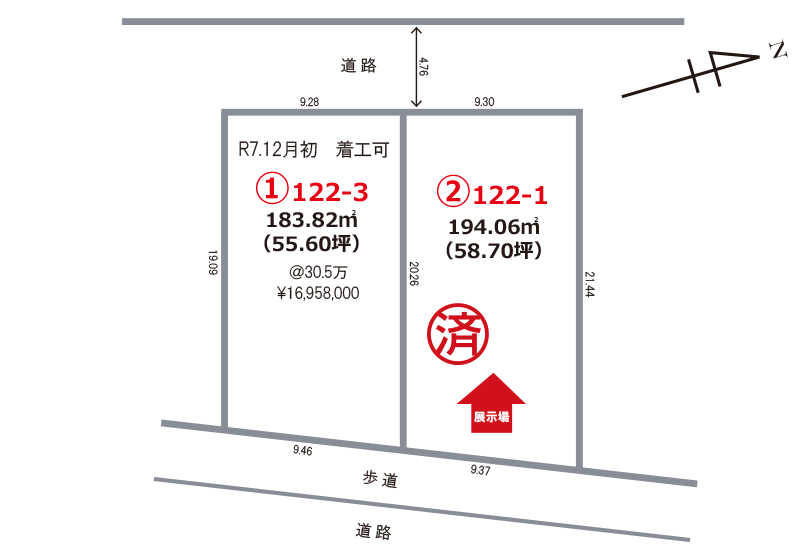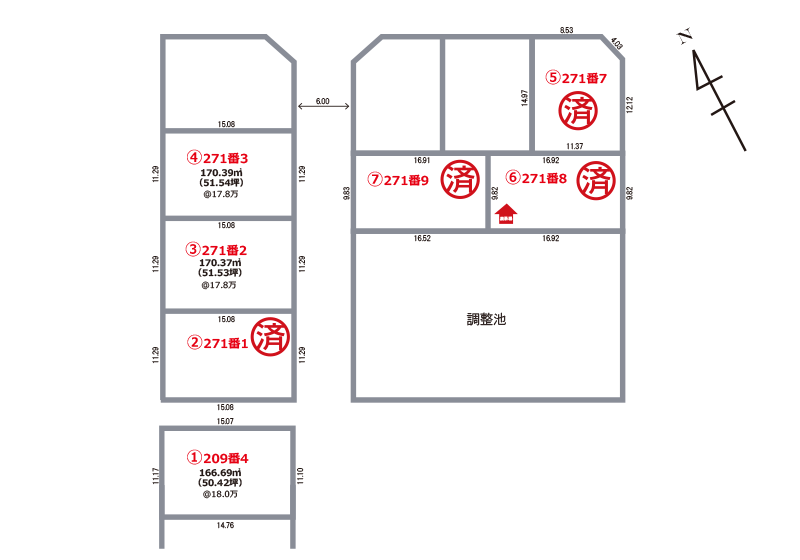 | 備考 | ③号地は北側に境界ブロックの設置をお願いします。 | ||