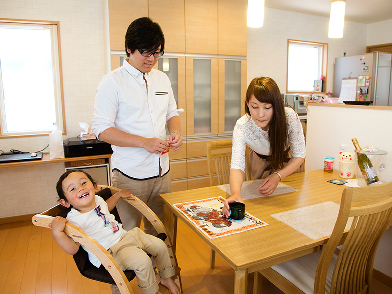 ご主人:僕も妻に誘われて、時間がある限り一緒に展示会を巡りました。いろいろ見ているうちに、和洋幅広いデザインや高い性能といったアイワホームが建てる住宅に対する信頼に加え、営業担当者から現場の職人さん、すでに家を建てたお客様までもがとても親身になってくださることに安心感を抱くようになりました。