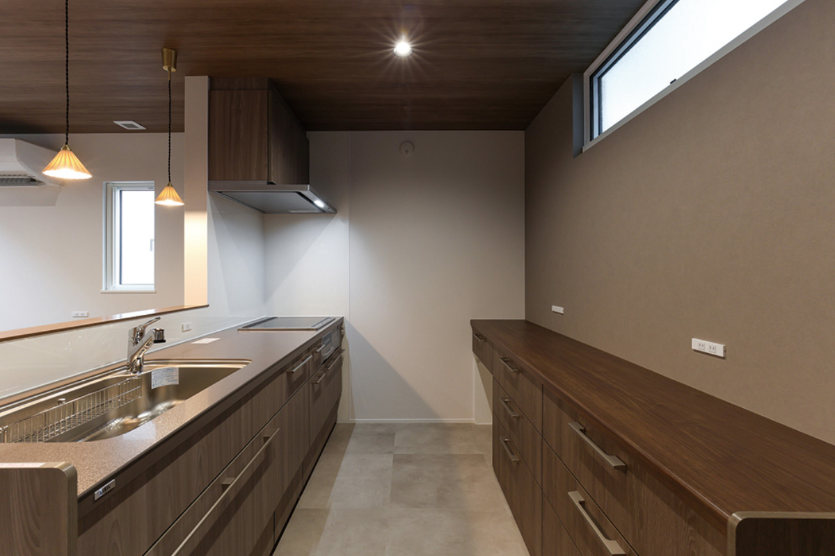 「毎日」を考えて設計した家事動線無駄な動きがないよう、キッチンからサンルームをつなげて設計された家事動線。家事のしやすさは家庭で違うので、家族がしやすいように間取りを考えて家造りができるのも注文住宅のいいところ。