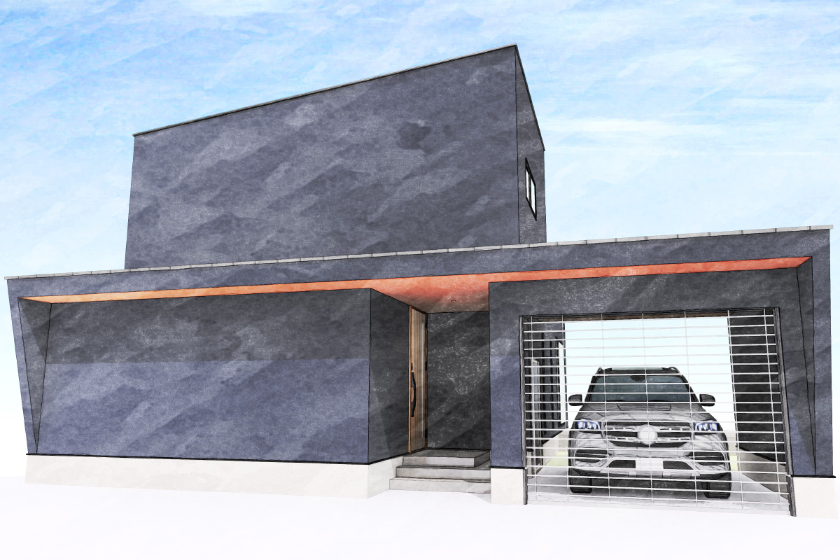 間口の広い土地を活かし、インナーガレージで迫力のある外観にまとめました。