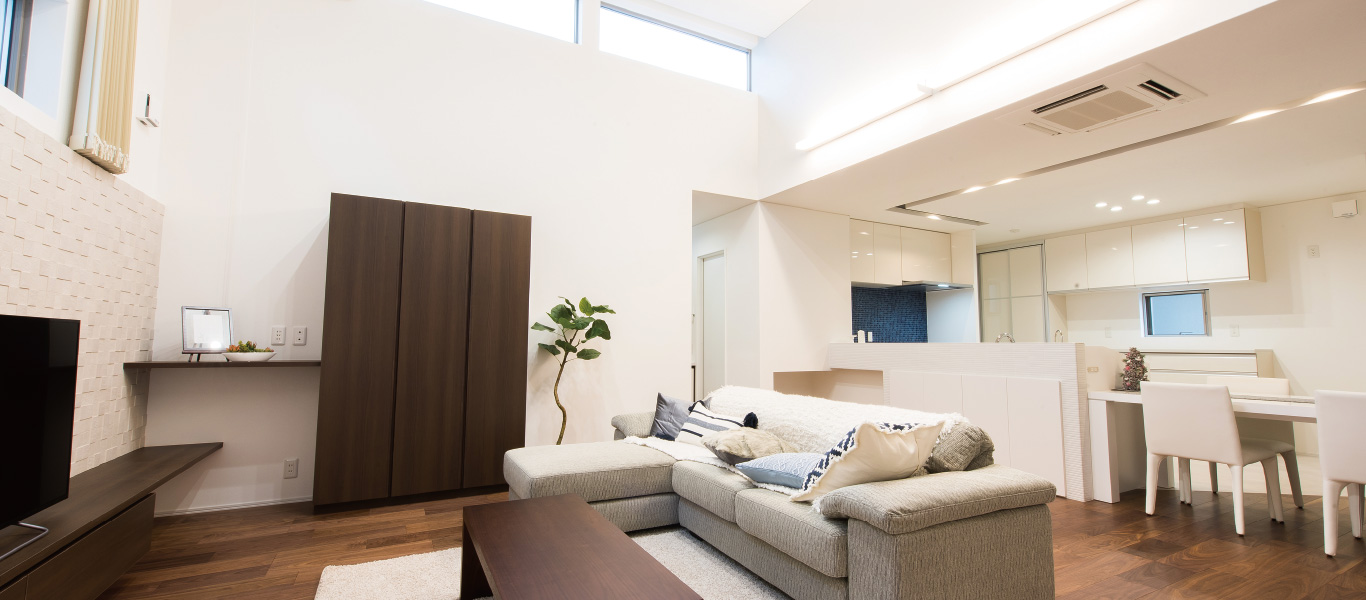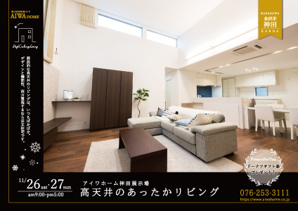 今回の内見会は高天井で開放的なリビングが特徴のお宅です。