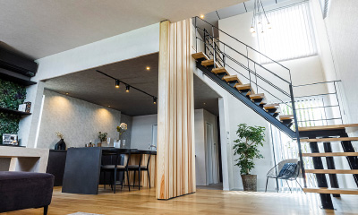 坪庭側の大きな掃き出し窓で南の採光を確保。お日様のやさしい光がたっぷり差し込むリビングとダイニング、キッチンを一直線に並べ、2階へと続く階段も近くに配置しました。「おはよう」、「おかえり」。家族の声が笑顔とともに響き、光あふれる空間にみんなが自然と集まり語らいが生まれる―そんな暮らしを叶えます。リビングは約3mの高天井で開放感を、間接照明であたたかみを演出。さらに、趣の異なる畳コーナーを隣接させることで実際以上の広がりを感じられる空間とし、家族がそれぞれのくつろぎと適度な距離感を実現します。笑顔に満ちた日々とともに人生を豊かにする住まい。その一つの答えが「新松村展示場」です。