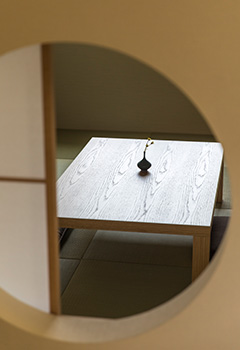 寝室の障子を利用した丸窓や、リビングの格子高天井といった和の意匠が、洗練された現代のデザインにぬくもりを与えます。10年、20年たっても愛おしいと思えるわが家であり続けます。