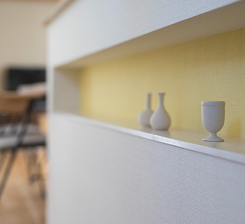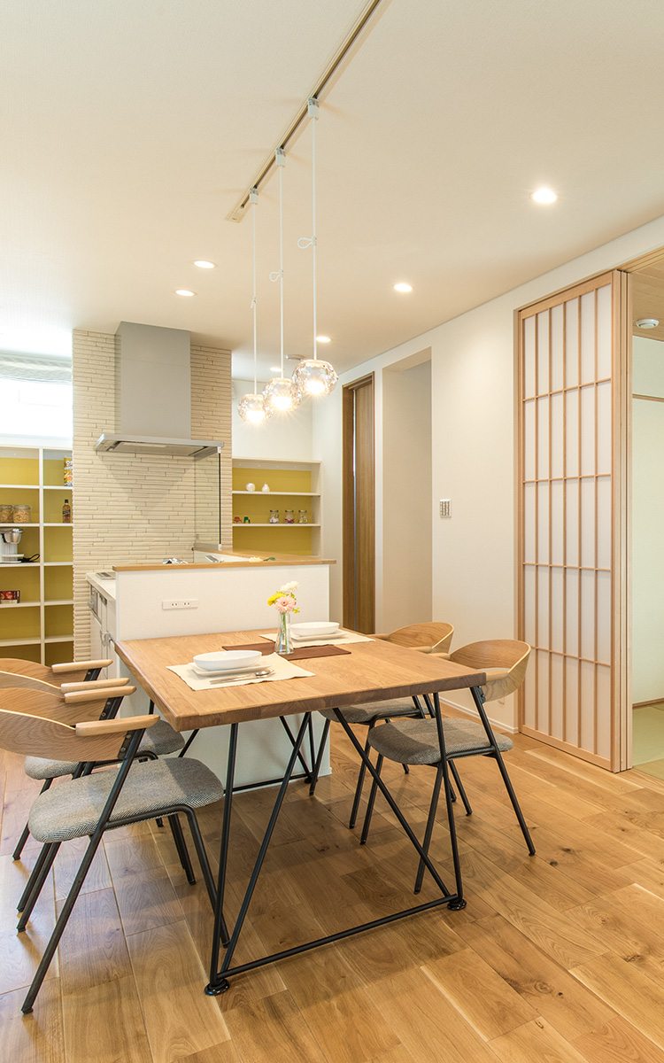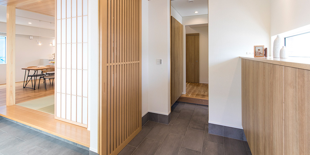 寝室の障子を利用した丸窓や、リビングの格子高天井といった和の意匠が、洗練された現代のデザインにぬくもりを与えます。10年、20年たっても愛おしいと思えるわが家であり続けます。