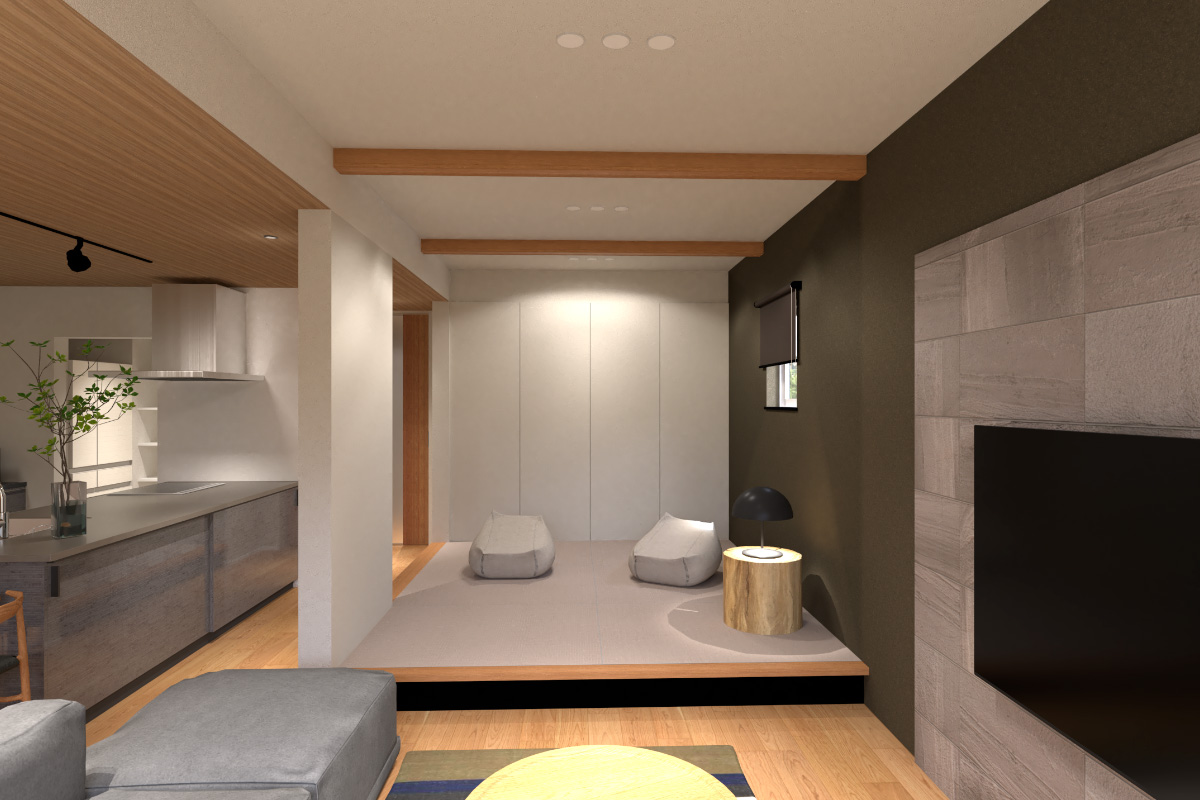 小上がりタタミコーナーリビングと繋がる20㎝の小上がりタタミコーナーはリビングと緩やかに空間を分けることができます。子供たちの遊び場として、くつろぎの場所として、暮らしの幅を広げます。