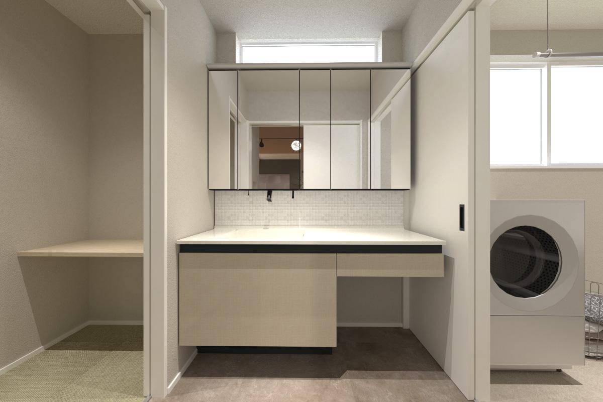 今回のお家は子育て世帯に配慮した家事ラク動線と家族との繋がりをテーマにお施主様のご要望を上手く取り入れました。