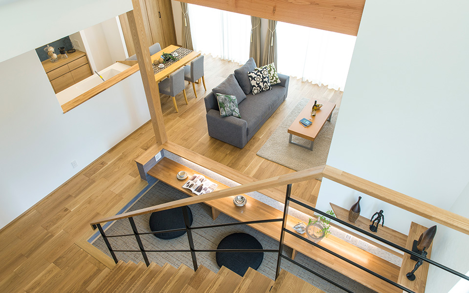 住まいは暮らすほどに愛着が深まるものでなくてはなりません。ふとした時に、気づく細やかな工夫にいいしれぬ満足感が生まれます。そんな一瞬を大切にしたいと私たちはいつも思っています。キッチン、スタディーコーナー、階段にいたるまですべてをインテリアとして考慮しています。