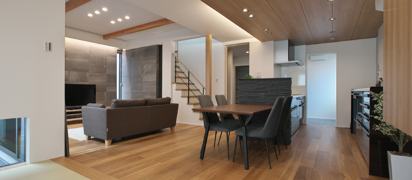 ひとつは上質な空間と開放感を、もうひとつは居心地の良さと収納や機能性をテーマにそれぞれのこだわりをカタチにしました。どちらも中庭テラスやルーフバルコニーなどプライバシーを守りつつ、休日等にはちょっと一息つける空間を確保しております。